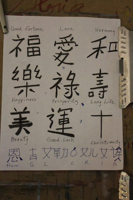 Chinese characters made today by Gloria Poole,RN,artist of / in Missouri since oct 2009.